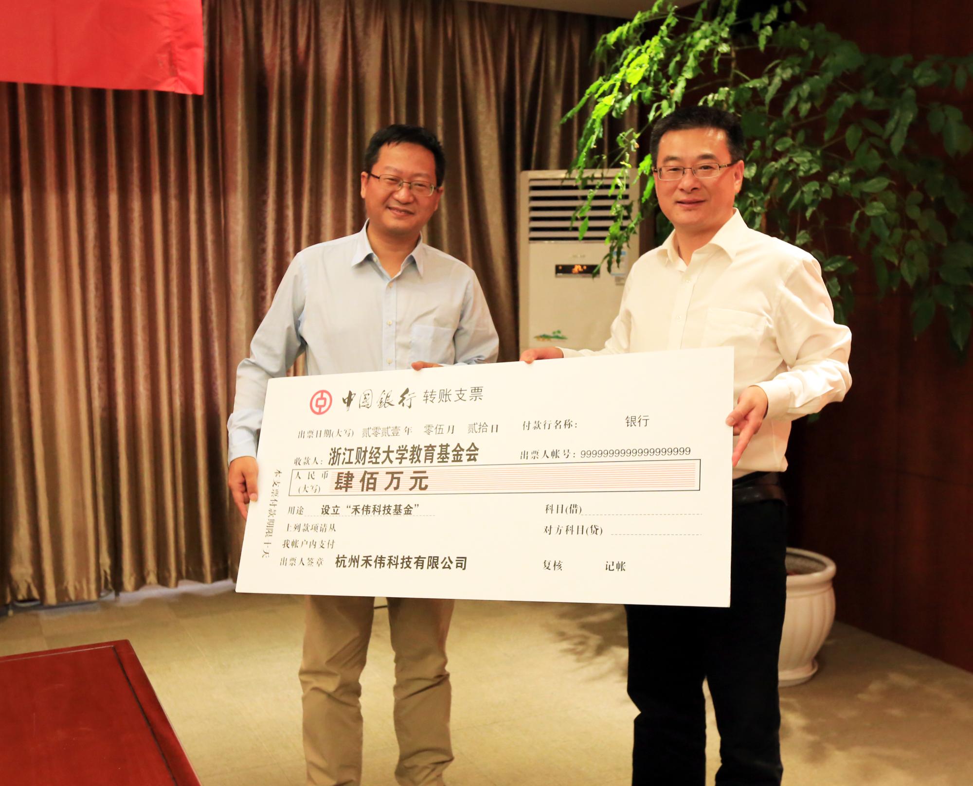 5月20日,杭州禾伟科技教育基金捐赠签约仪式在我校下沙校区举行。校友总会副会长、副校长王奎泉,校友总会副会长兼秘书长、副校长徐晓东,杭州禾伟科技有限公司董事长王坚、总经理蒋强等出席签约仪式。