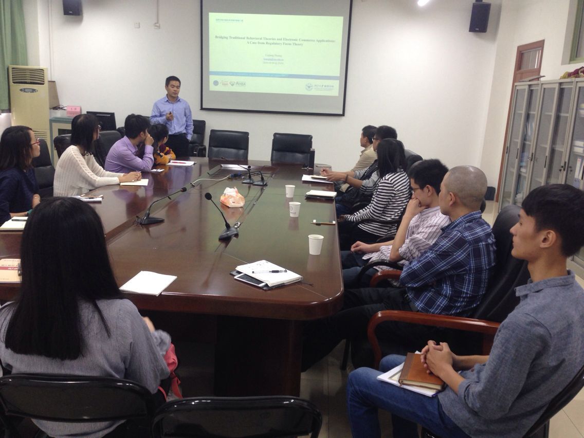 109日下午,浙江大学管理学院黄鹂强博士在我院404会议室为全院师生带来一场题为“Bridging Traditional Behavioral Theories and Electronic Commerce Applications: A Case from Regulatory Focus Theory”的学术讲座。信工学院近20余名科研骨干、研究生参加了本次讲座。