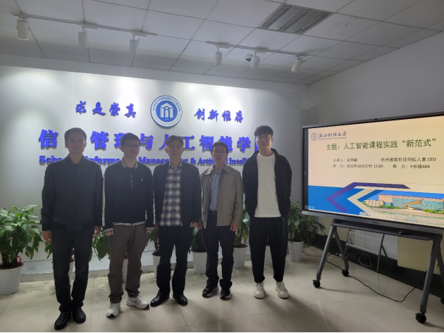 随着人工智能技术的发展,以及在各行各业的应用,我院不断加大人工智能相关学科的投入与建设,开设《智能时代》全校性通识课程、“人工智能”微专业,大力支持文华学院、盈阳金融科技学院的课程建设。一方面,学科建设要求人工智能实验室提供跨学院的培养能力;另一方面,专业教师在人工智能相关领域的研究要求人工智能实验室提供强大的算力支持、资源管理与分配。为满足实验室建设的需求,近日学院召开人工智能实验室建设研讨会,邀请杭州睿数科技创始人兼 CEO吴仲毓作专题报告,信智学院院长张帅教授、副院长隆清琦、各系部主任、骨干教师参与。