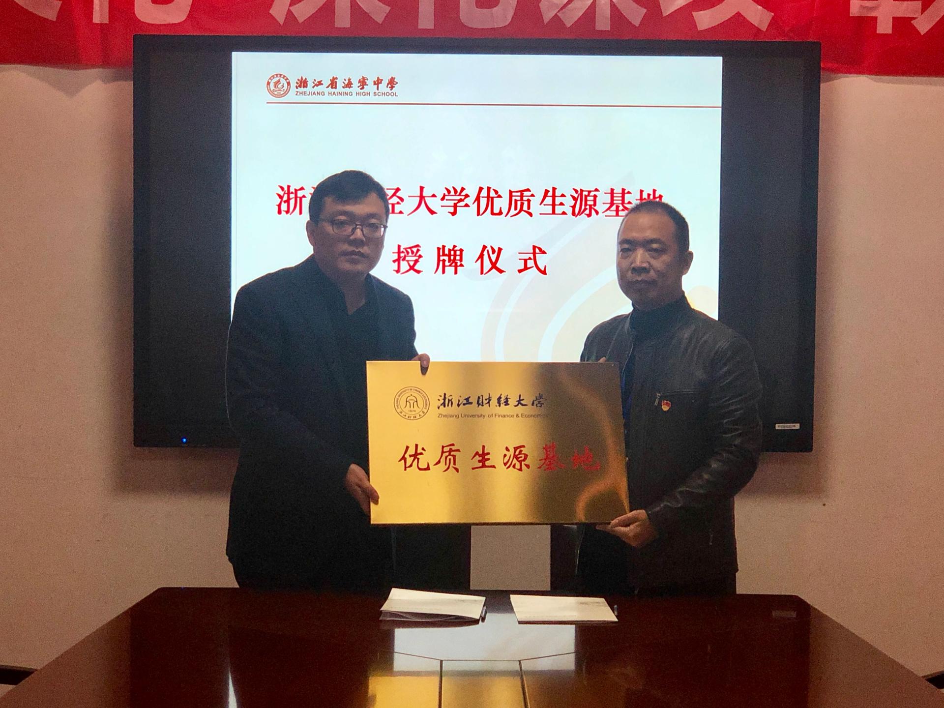 沈宇校长介绍了海宁中学的发展历史和基本概况及近几年的教学成果。他表示,此次挂牌将成为海中和浙财加强沟通联系的桥梁和纽带;海中会进一步深化教育改革,提升教学质量,努力为浙财提供更多更优秀的生源。