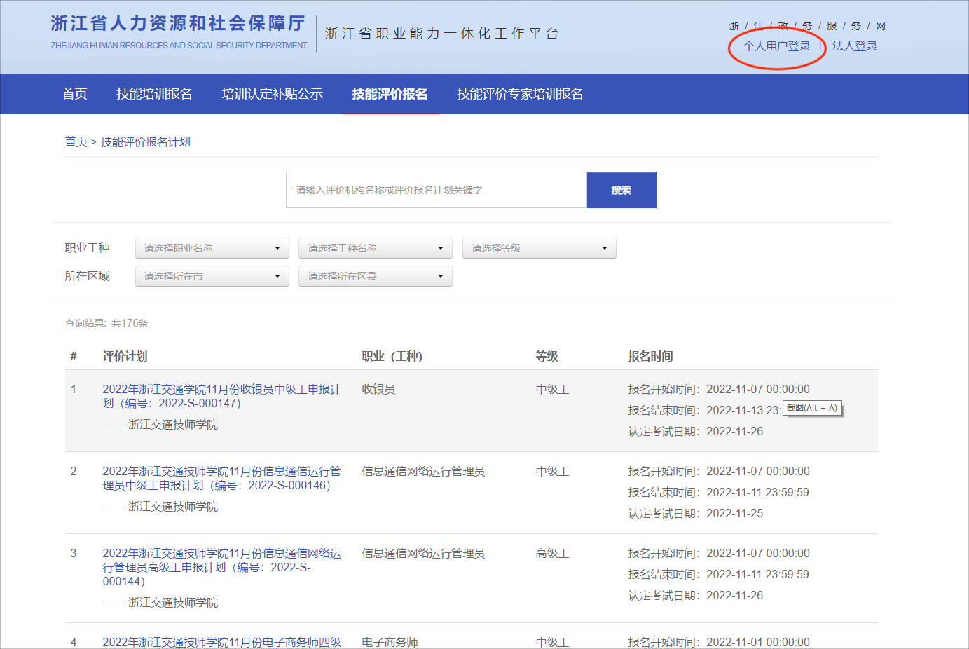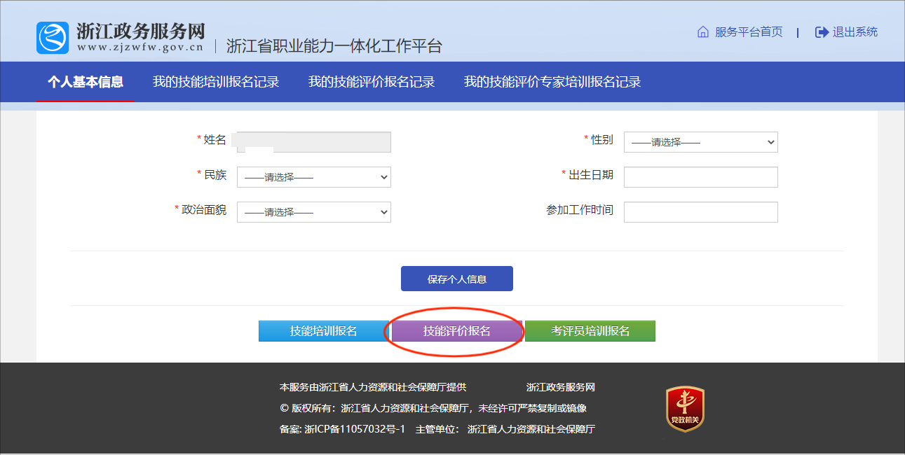 (一)登录网址:浙江省人力资源和社会保障厅浙江省职业能力一体化工作平台 https://zynl.rlsbt.zj.gov.cn