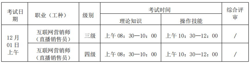 考试时间为2024年12月1日(周日)上午,请考生根据申报的职业(工种)和等级参加考试,具体安排如下: